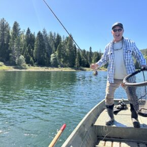 Fast forward to now. The Fountain Fire of ’92 had scorched the land. Cal fire saved the town of Burney by airlifting all the water out of Lake Margaret and dumping it on the fire line saving the town in a hail mary. But thirty years later, the forest had returned with a vengeance. The lake was full, the trees stood tall, and cell service was a godsend. Wilderness Unlimited provided rowboats for free. The fish were feasting on Chironomids and Calibaetis nymphs. We were witnessing the Rebirth of a lake that was decimated last time we were here.